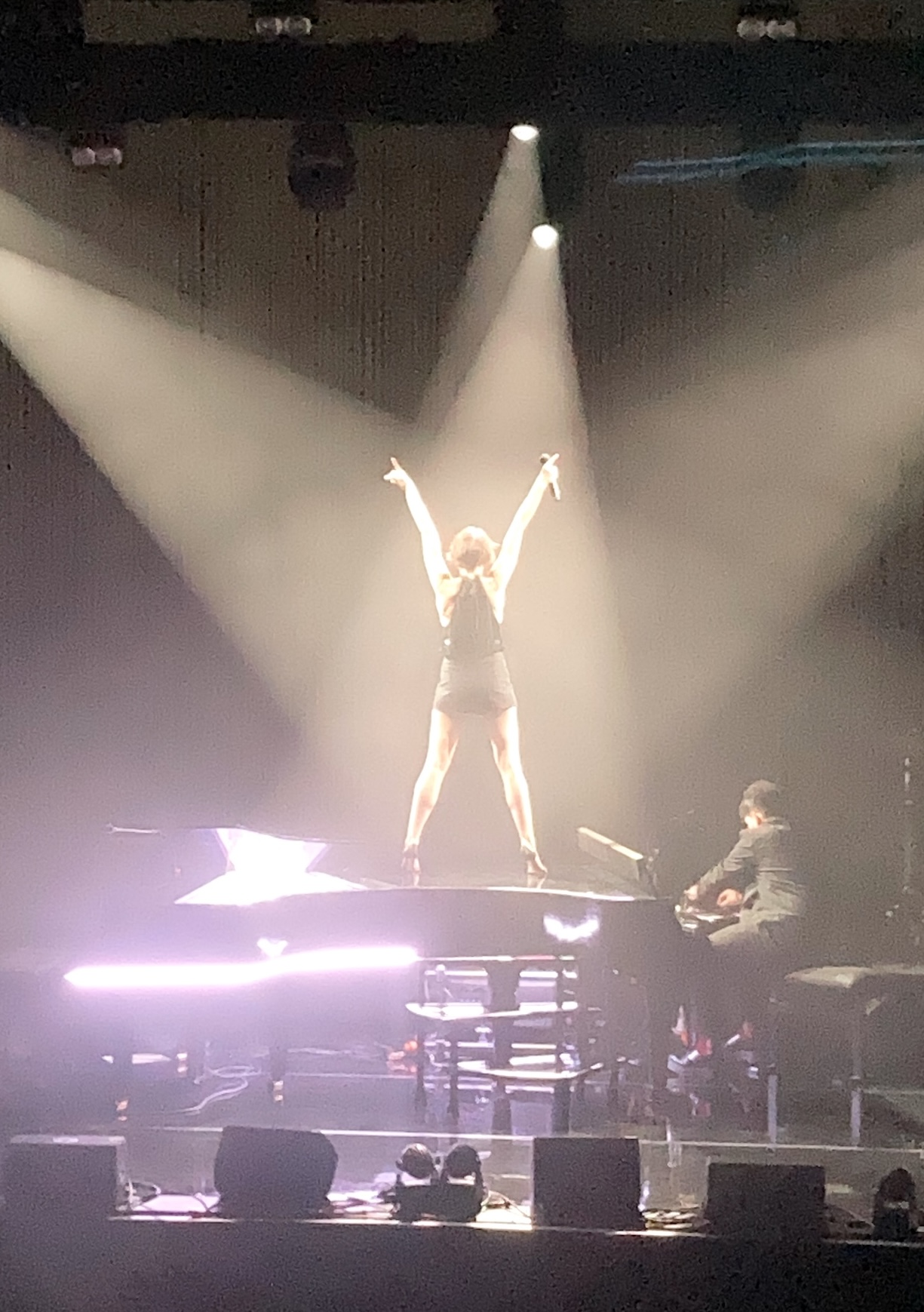 Au concert de vendredi dernier, au Douze, elle s’est montrée particulièrement mutine et en forme. Après son assiette de coquillettes. (Il paraît qu’elle mange toujours une assiette de coquillettes dans sa loge avant de monter sur scène. Elle ne l’a pas révélé en public, mais moi je sais ses petits secrets parce que je suis abonnée à sa newsletter 😌)