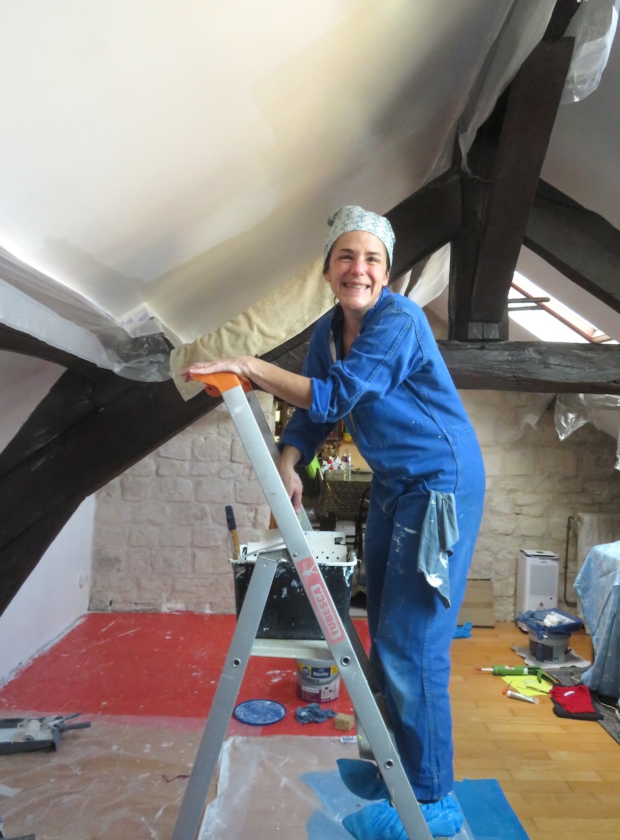 Désormais, et pour l’éternité, Théodora est associée aux scotchs de protection sur les poutres, aux surchausses, aux bâches trouées comme mes chaussettes d’avant et à l’odeur de peinture fraîche.