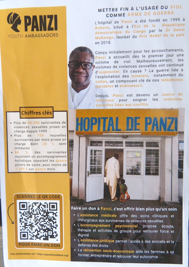 Le Dr. Mukwege a créé et dirige l’hôpital Panzi, situé à Bukavu dans la province du Sud-Kivu (à proximité de la frontière rwandaise) en République démocratique du Congo.